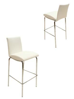 White leather cushion stool with chrome legs 400mmL x 480mmW x 1020mmH
