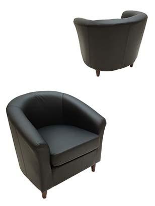 Black Tub chair with short wooden legs 680mmL x 750mmW x 720mmH
